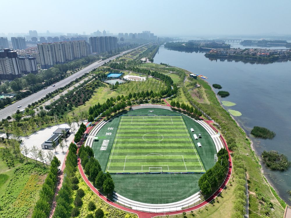 河北省遷安市灤河沿岸風(fēng)光(2023年7月7日攝,無(wú)人機照片)。新華社記者 牟宇 攝