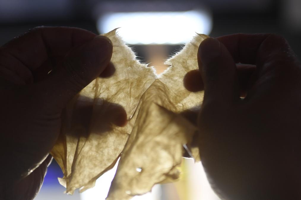 黃宏健展示開(kāi)化紙的纖維長(cháng)度。新華社記者 翁忻旸 攝