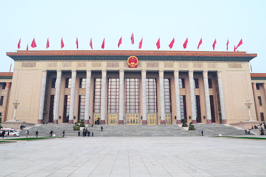 3月5日(星期日)上午9時(shí),第十四屆全國人民代表大會(huì )第一次會(huì )議在人民大會(huì )堂舉行開(kāi)幕會(huì )。圖為人民大會(huì )堂外景。(新華網(wǎng)記者 焦鵬 攝)
