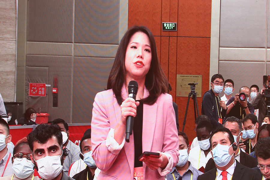 中國共產(chǎn)黨第二十次全國代表大會(huì )新聞發(fā)言人2022年10月15日(星期六)16時(shí)30分在人民大會(huì )堂舉行新聞發(fā)布會(huì )。圖為新加坡亞洲新聞臺記者。(新華網(wǎng) 王翰林 攝)