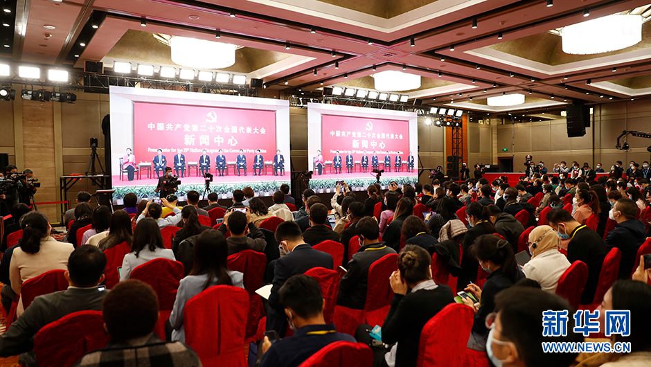 10月18日(星期二)15:00,二十大新聞中心在梅地亞新聞中心二層新聞發(fā)布廳舉辦第一場(chǎng)集體采訪(fǎng)。圖為分會(huì )場(chǎng)現場(chǎng)。(新華網(wǎng) 陳杰 攝)