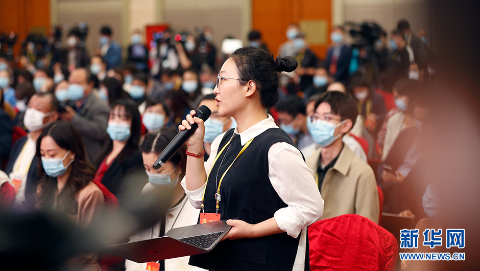10月20日(星期四)10:00,二十大新聞中心在梅地亞新聞中心二層新聞發(fā)布廳舉辦第四場(chǎng)記者招待會(huì )。圖為北京青年報記者在分會(huì )場(chǎng)提問(wèn)。(新華網(wǎng) 陳杰 攝)