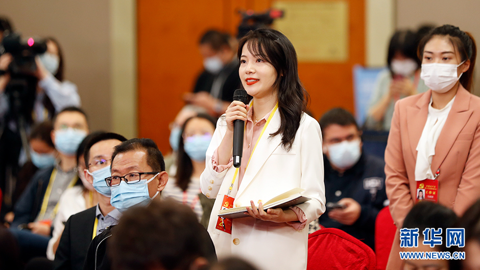 10月21日(星期五)10:00,二十大新聞中心舉辦第五場(chǎng)記者招待會(huì )。圖為中國環(huán)境報記者在分會(huì )場(chǎng)提問(wèn)。(新華網(wǎng) 陳杰 攝)