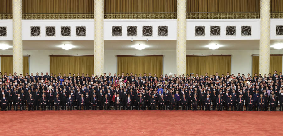 10月23日下午,中共中央總書(shū)記、國家主席、中央軍委主席習近平等領(lǐng)導同志在北京人民大會(huì )堂親切會(huì )見(jiàn)出席黨的二十大代表、特邀代表和列席人員,并同大家合影留念。新華社記者 丁林 攝