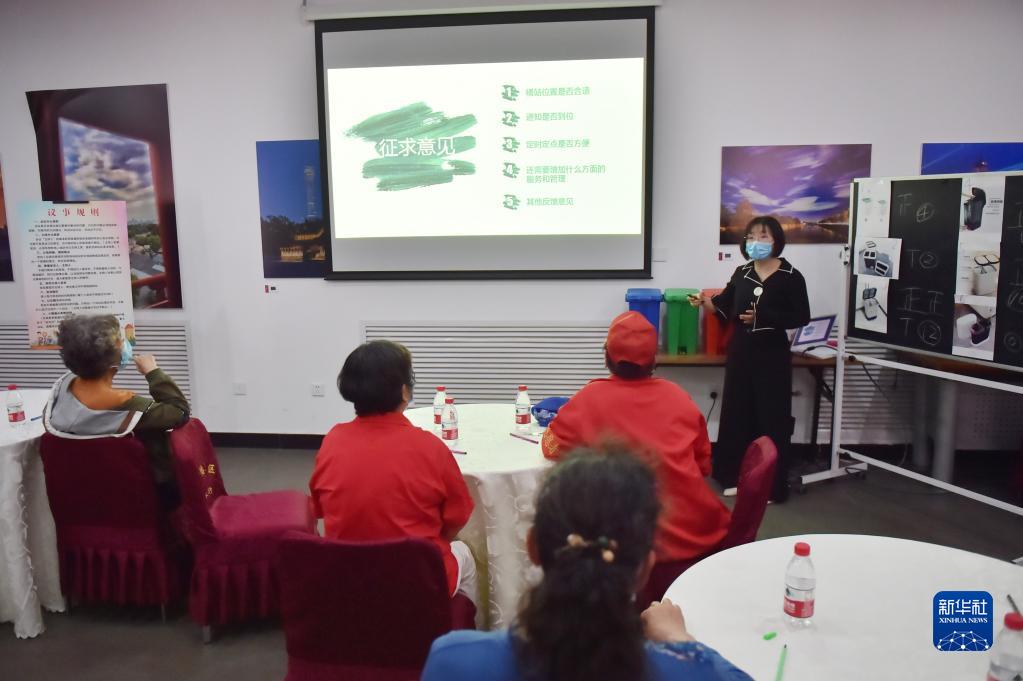 在北京建國門(mén)街道趙家樓社區議事廳舉行的“兩桶一袋”居民征求意見(jiàn)懇談會(huì )上,來(lái)自社區的12位垃圾分類(lèi)達人對“兩桶”款式進(jìn)行投票選擇,同時(shí),街道針對桶站位置、定時(shí)定點(diǎn)投放等垃圾分類(lèi)運營(yíng)管理聽(tīng)取居民意見(jiàn)(2020年5月2日攝)。新華社記者 彭子洋 攝