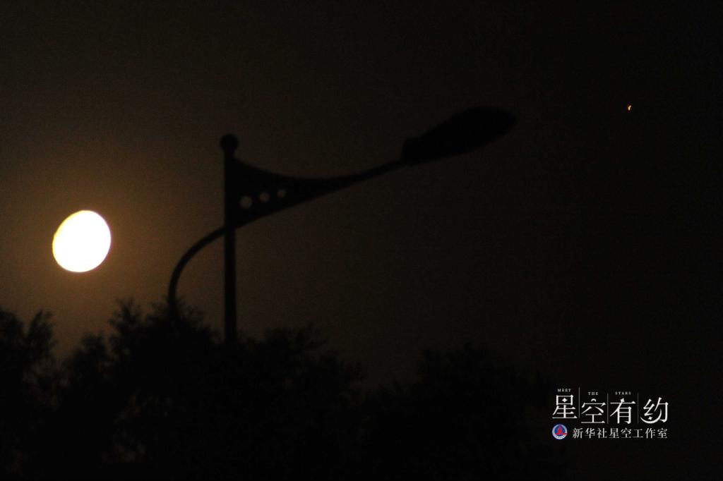 這是2014年5月11日晚在山西省運城市新絳縣拍攝的火星合月。(新華社發(fā))