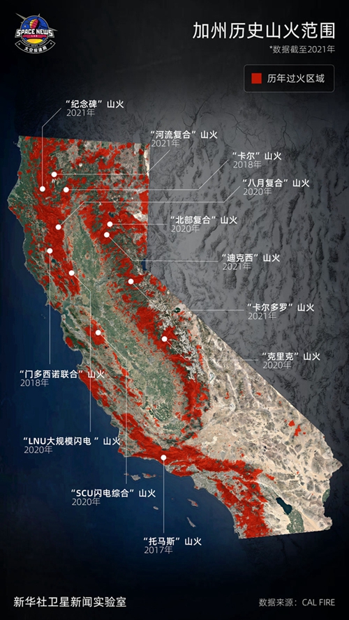 利用NASA全球火災排放數據庫開(kāi)發(fā)的近實(shí)時(shí)衛星監測技術(shù),并參照加州空氣資源委員會(huì )公布的野火排放數據,過(guò)去兩年加州二氧化碳排放量處于近20年來(lái)最高水平。2021年,加州野火釋放了1.61億噸二氧化碳,相當于該州2020年排放清單的40%左右。