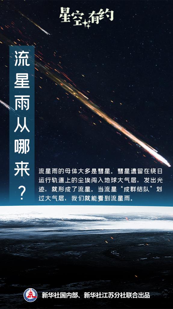 “其實(shí),流星雨的母體大多是彗星。彗星遺留在繞日運行軌道上的塵埃闖入地球大氣層,發(fā)出光跡,就形成了流星。當流星‘成群結隊’劃過(guò)大氣層,我們就能看到流星雨?!蓖蹩瞥f(shuō)。