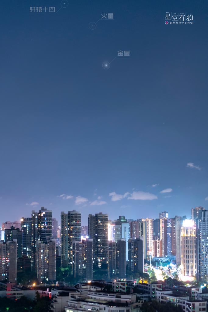 “當晚,雖然軒轅十四的亮度為1.35等,比微微泛紅的火星還要明亮,但在光污染較為嚴重的城市,要想憑借肉眼看到它們并非易事,感興趣且有條件的公眾可借助小型天文望遠鏡觀(guān)測;要想用肉眼看到‘高清版’,建議選擇光污染較低的地方,如郊區、農村等地,更利于觀(guān)測和拍照?!辟?lài)迪輝提醒說(shuō)。