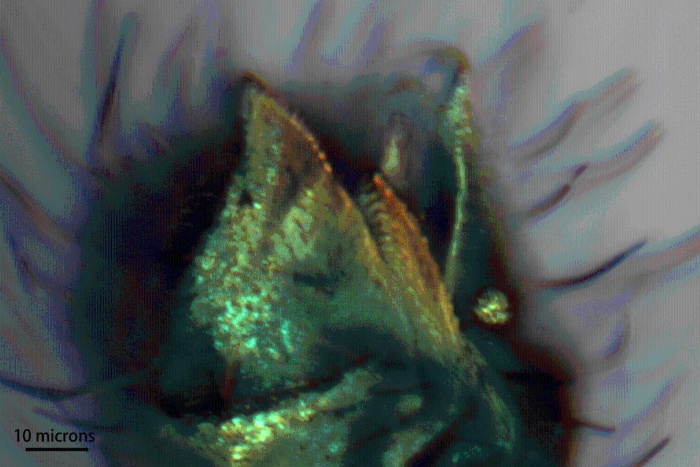 激光共聚焦顯微鏡下的雄蚊口器細節。(中國科學(xué)院南京地質(zhì)古生物研究所供圖)