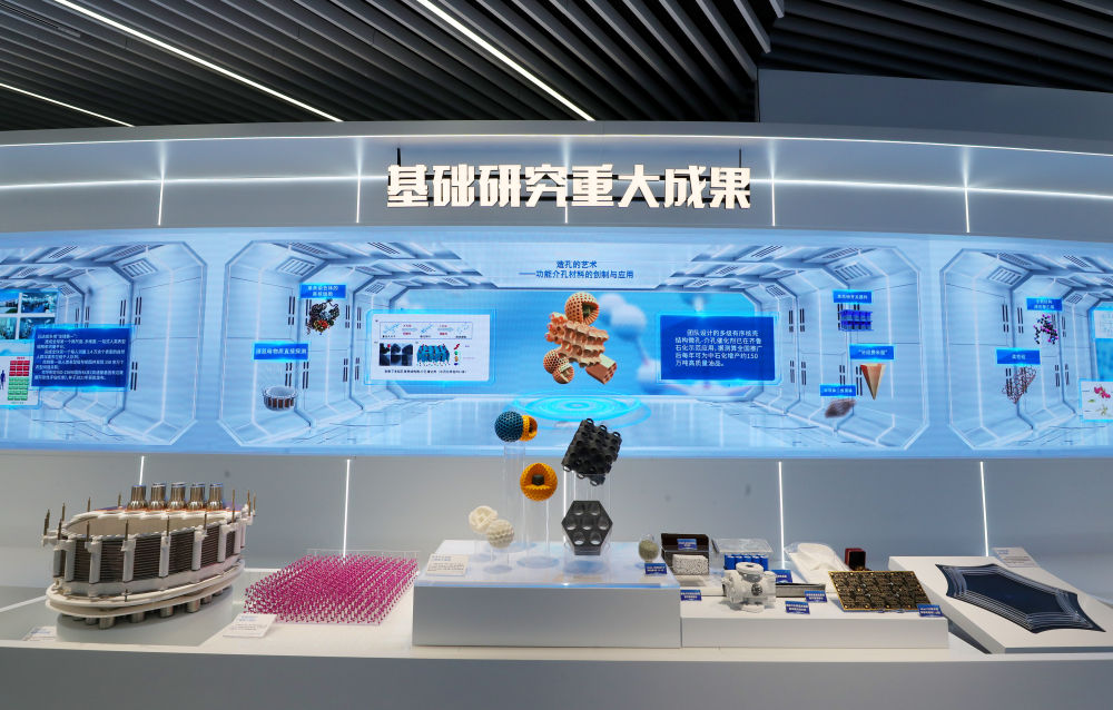 這是2023年11月29日在上??萍紕?chuàng )新成果展上拍攝的基礎研究重大成果展臺。新華社記者 方喆 攝