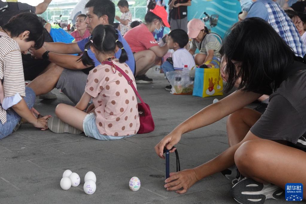在大佳河濱公園的活動(dòng)現場(chǎng),許多家長(cháng)帶著(zhù)孩子,用彩筆在雞蛋殼上或繪制各種圖案,或寫(xiě)下自己的名字和“端午快樂(lè )”等字樣,然后嘗試把雞蛋立起來(lái),既緊張又有趣。人們相信,在端午節這天的正午時(shí)分,成功把雞蛋豎立起來(lái)會(huì )給自己和家人帶來(lái)一年的好運。