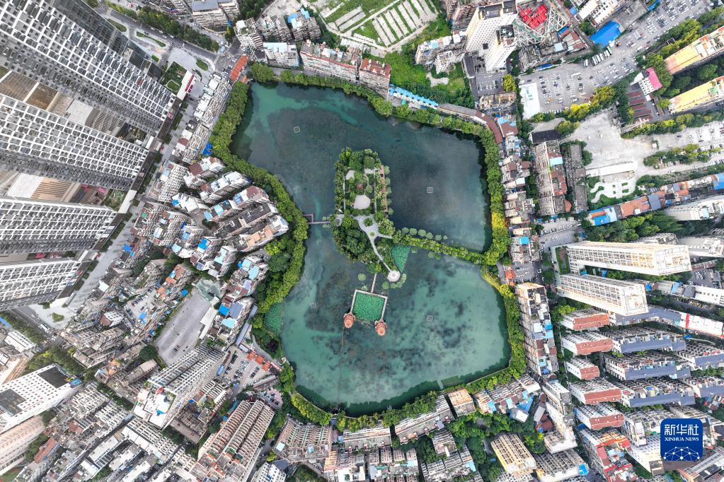 7月3日拍攝的武漢市寶島公園(無(wú)人機拼接照片)。新華社記者 伍志尊 攝