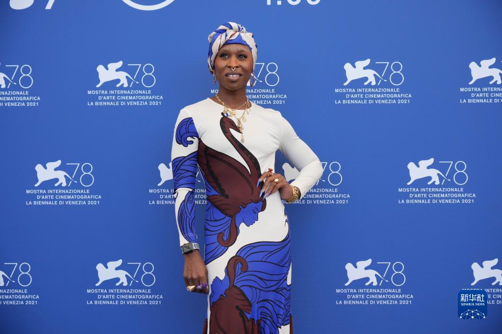 9月1日,在意大利威尼斯利多島,第78屆威尼斯國際電影節主競賽單元評委辛西婭·埃里沃亮相拍照式。