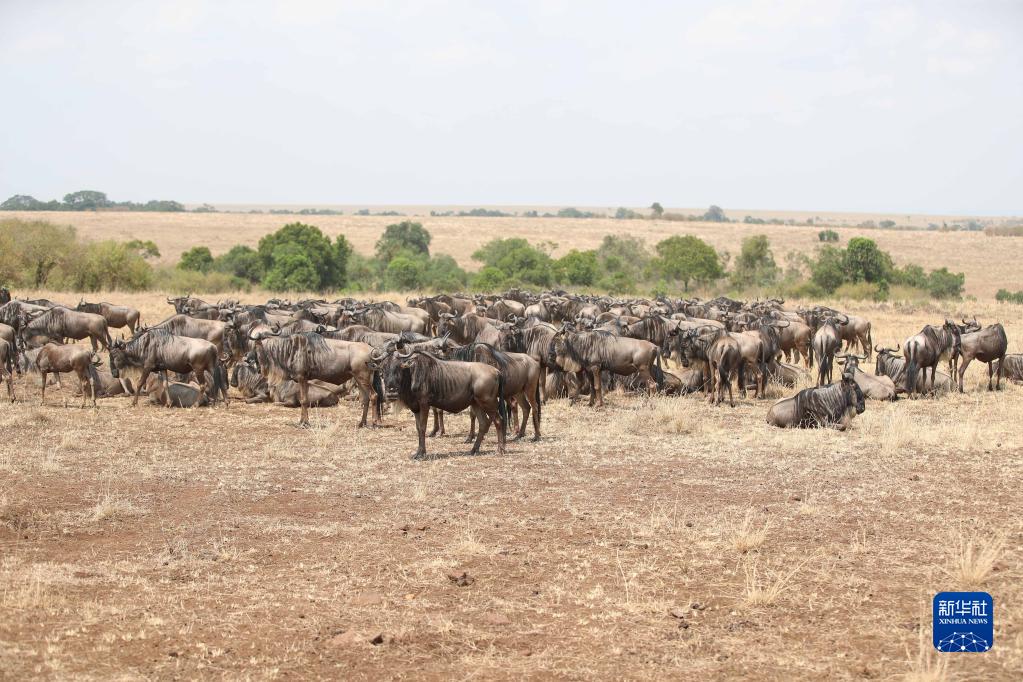 這是8月30日在肯尼亞馬賽馬拉國家保護區拍攝的角馬。