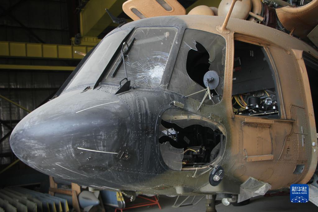 這是9月20日在阿富汗喀布爾機場(chǎng)拍攝的被毀壞的阿富汗空軍直升機。