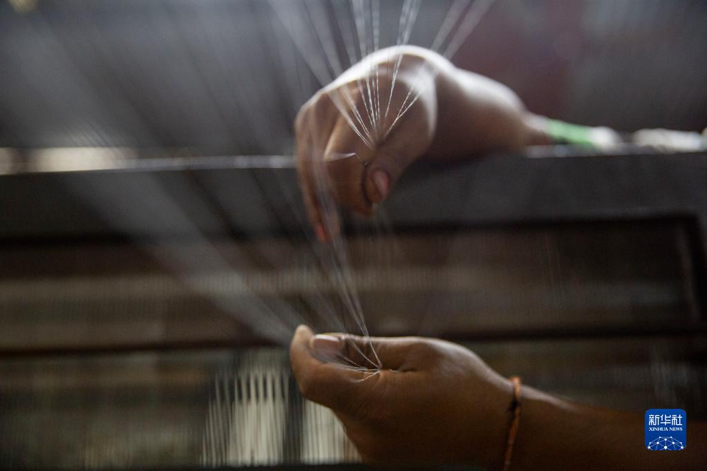 10月10日,一名工人在尼泊爾加德滿(mǎn)都的一處披肩工廠(chǎng)工作。