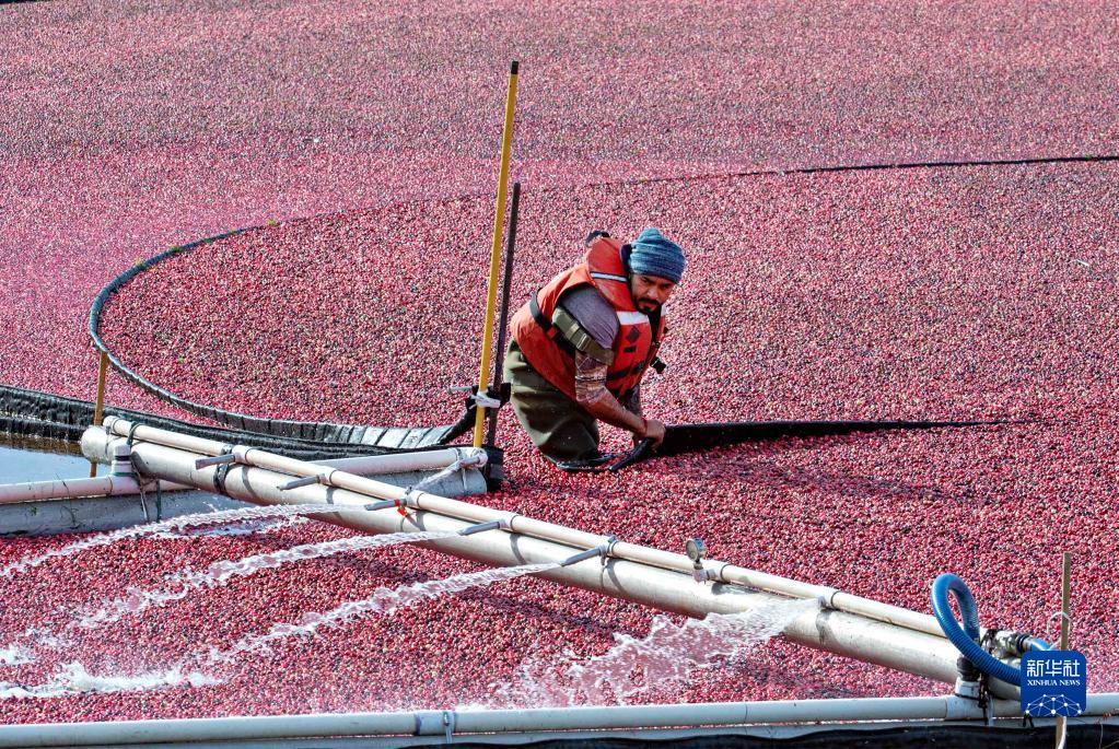 10月19日,農民在加拿大里士滿(mǎn)收獲蔓越莓。