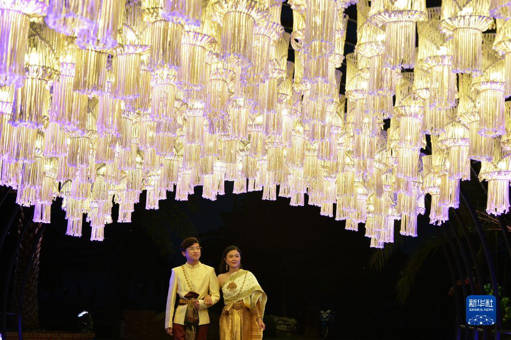 11月8日,游客在泰國北欖府舉行的國際燈籠美食節預展活動(dòng)上觀(guān)賞燈籠。