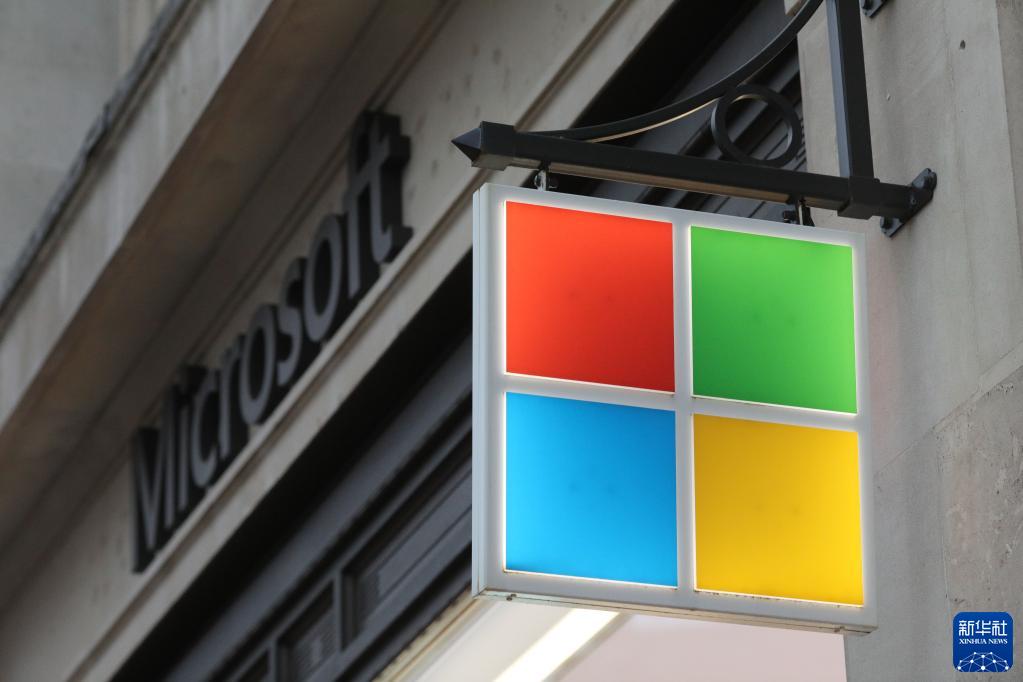 這是11月13日在英國倫敦拍攝的微軟品牌標識。