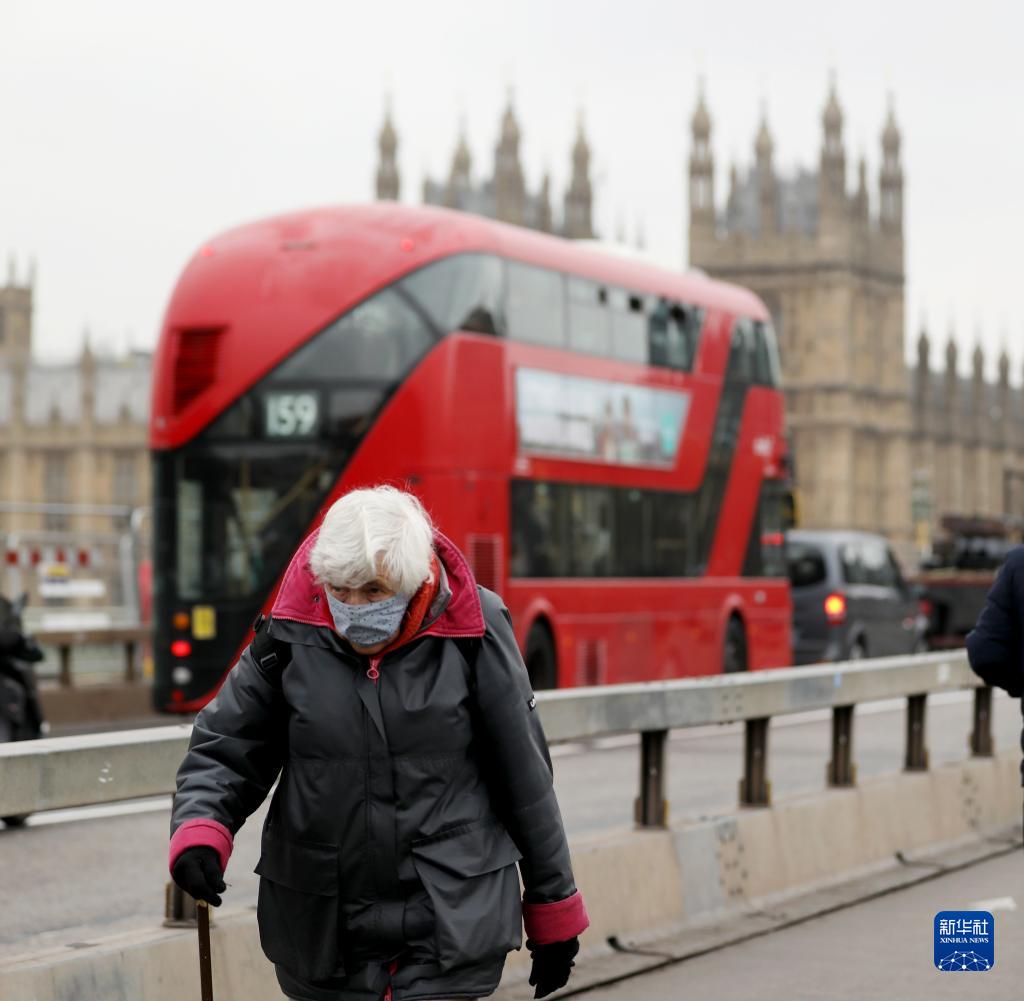 11月24日,在英國倫敦,佩戴口罩的行人走過(guò)威斯敏斯特橋。