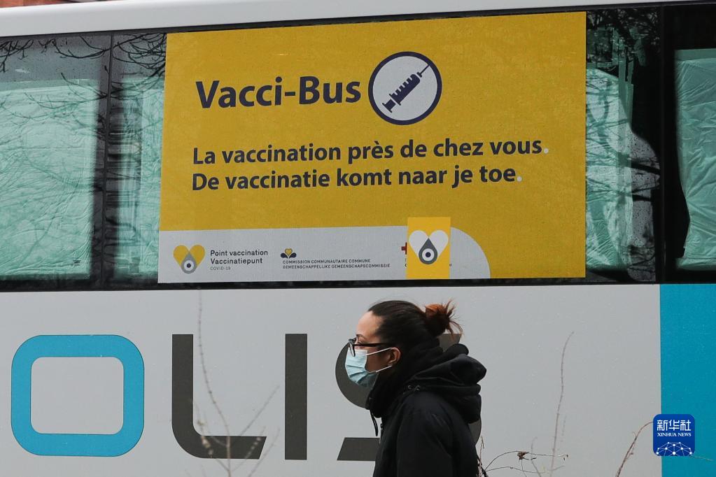 11月30日,一名女子經(jīng)過(guò)比利時(shí)布魯塞爾的一輛新冠疫苗接種巴士。