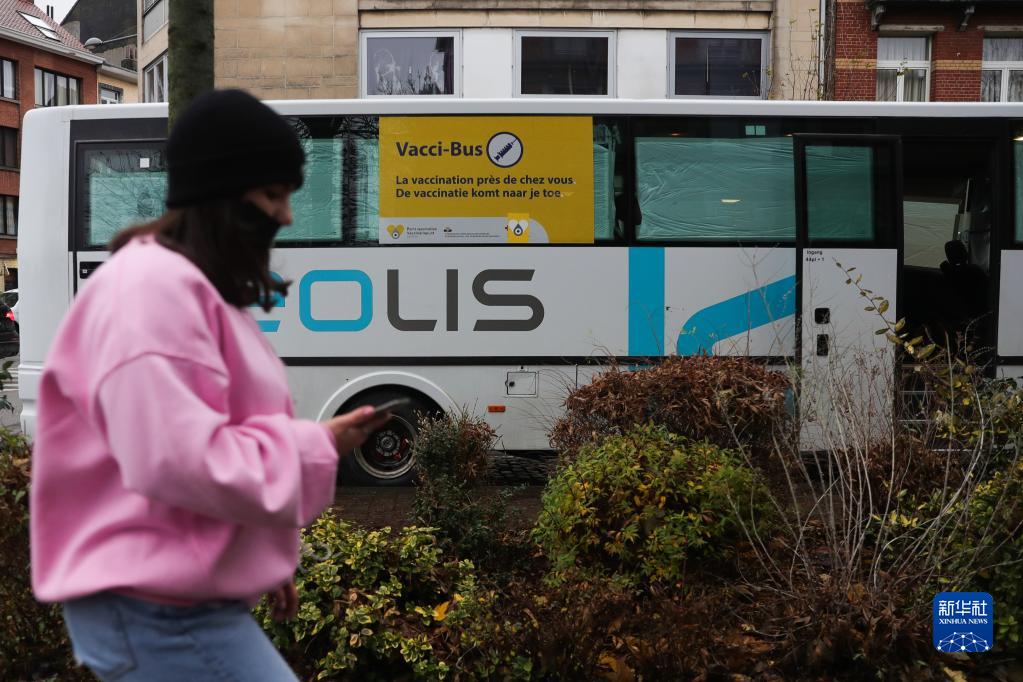 11月30日,一名女子經(jīng)過(guò)比利時(shí)布魯塞爾的一輛新冠疫苗接種巴士。