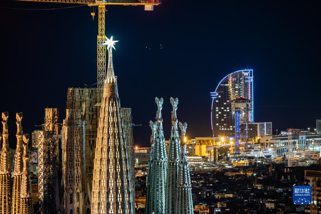 西班牙巴塞羅那地標建筑圣家族大教堂(又稱(chēng)圣家堂)上的塔頂之星于11月29日安裝,12月8日點(diǎn)亮,標志著(zhù)教堂建設“封頂”。圣家堂由西班牙著(zhù)名建筑師高迪設計,從1882年開(kāi)始修建至今,預計將于2030年竣工。