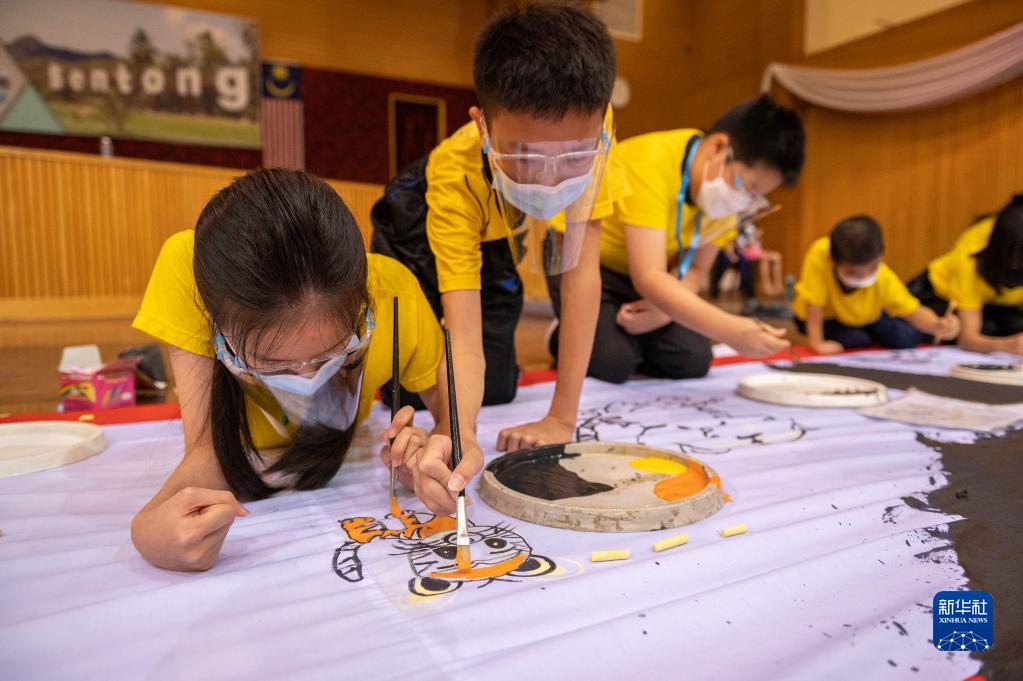 12月26日,學(xué)生們在馬來(lái)西亞彭亨州文冬創(chuàng )作老虎主題年畫(huà)。