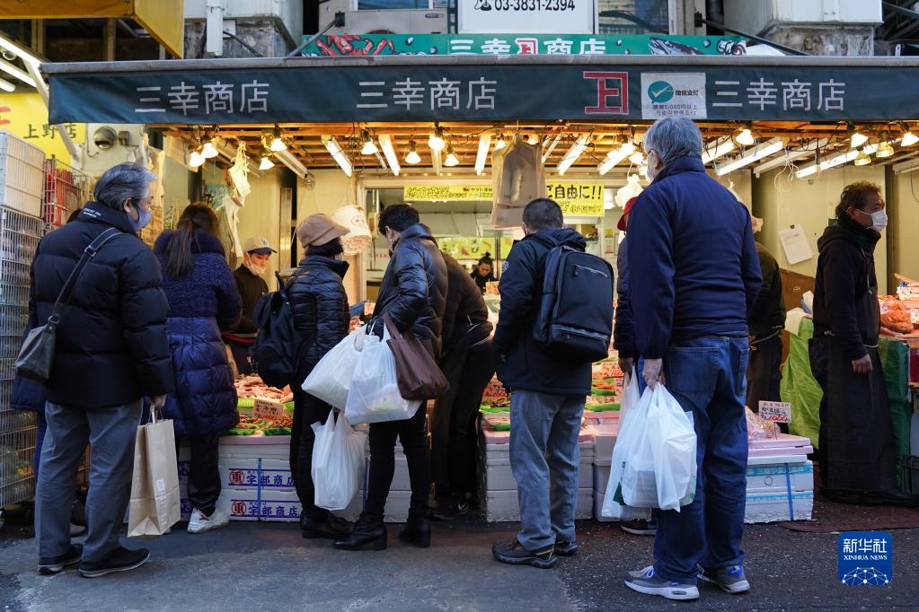 12月28日,人們在日本東京阿美橫町購買(mǎi)促銷(xiāo)商品。
