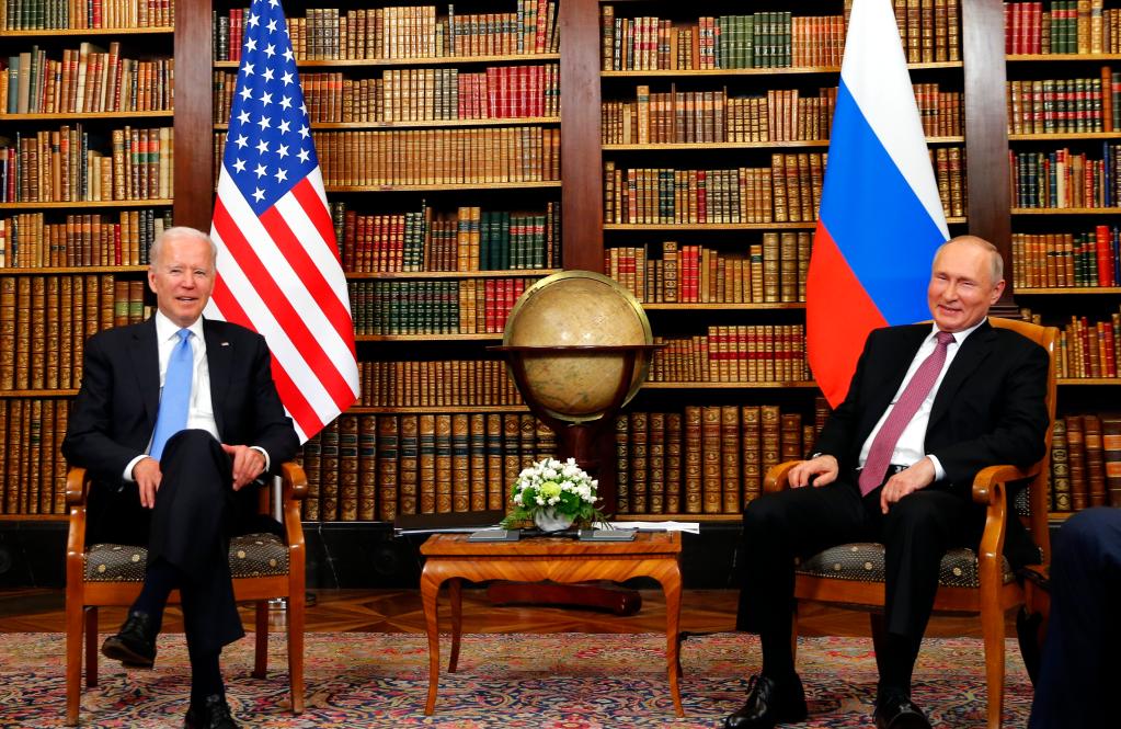 2021年6月16日,美國總統拜登(左)和俄羅斯總統普京在瑞士日內瓦的拉格朗熱別墅舉行會(huì )晤。(新華社發(fā),Pool圖片,丹尼斯·巴利布斯攝)