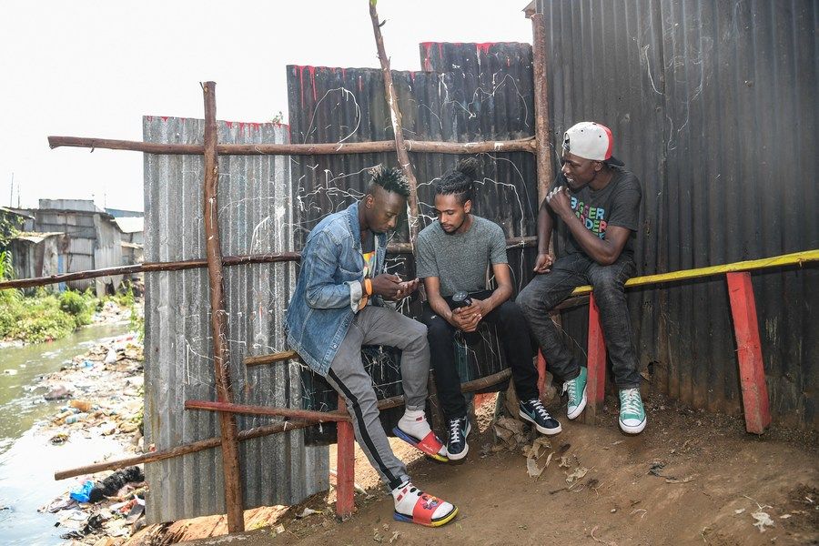 ↑2021年7月27日,“賽普勒斯”樂(lè )隊成員在肯尼亞首都內羅畢的馬薩雷貧民窟合唱樂(lè )隊單曲《哈里》。?