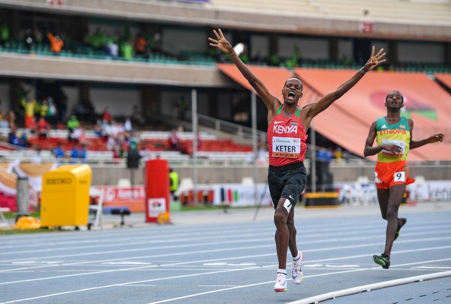 ↑2021年8月21日,在男子1500米決賽中,肯尼亞選手凱特(左)獲得冠軍。