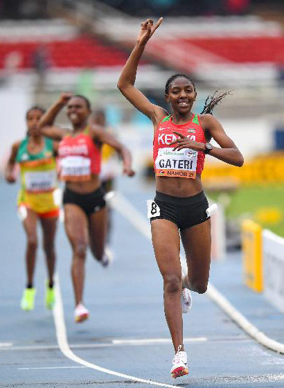 ↑2021年8月19日,在女子3000米決賽中,肯尼亞選手加泰里(前)獲得冠軍。