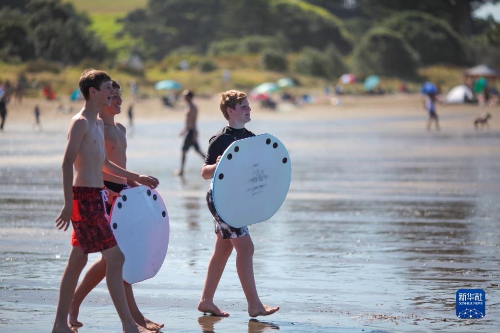 1月4日,在新西蘭最大城市奧克蘭,人們在海灘休閑。