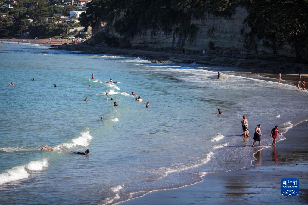 1月4日,在新西蘭最大城市奧克蘭,人們在海灘休閑。