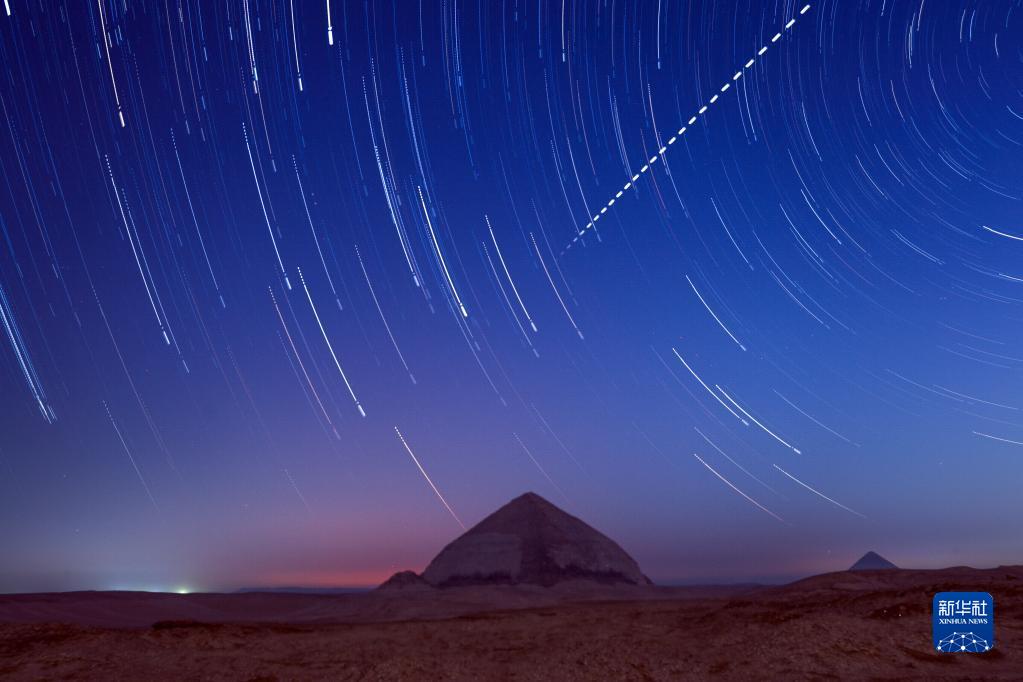 2021年11月26日在埃及首都開(kāi)羅以南的彎曲金字塔附近拍攝的照片顯示,中國空間站劃過(guò)夜空(軌跡為多張照片堆棧)。2021年10月16日,神舟十三號載人飛船成功發(fā)射,開(kāi)啟中國迄今時(shí)間最長(cháng)的載人飛行。3名航天員將在中國天宮空間站核心艙在軌駐留6個(gè)月。
