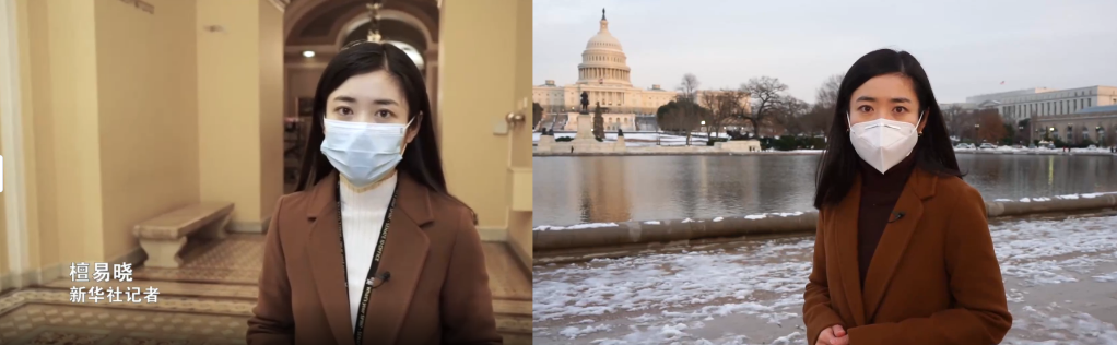 ?。ㄒ曨l截屏拼圖:左為2021年1月在國會(huì )大廈內部,右為2022年1月在國會(huì )山腳下)