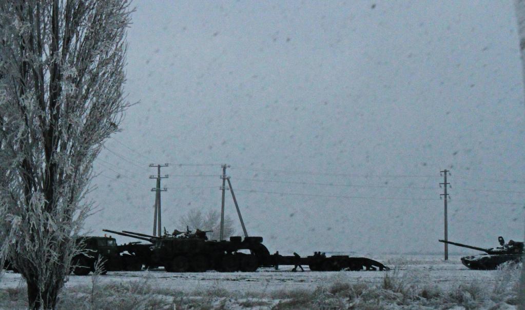 這是2016年12月24日在通往烏克蘭頓涅茨克市的路上拍攝的從前線(xiàn)撤回的烏政府軍重型火炮和坦克。新華社記者陳俊鋒攝