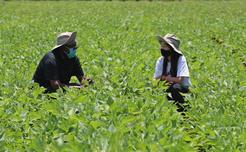 李奕(右)在田間地頭。新華社記者龍雷攝