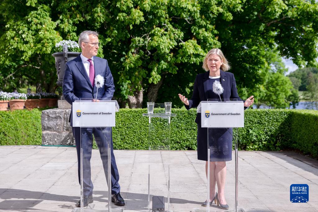 6月13日,瑞典首相安德松(右)與到訪(fǎng)的北約秘書(shū)長(cháng)斯托爾滕貝格在瑞典首都斯德哥爾摩以西約120公里的哈普松德首相夏季莊園出席新聞發(fā)布會(huì )。