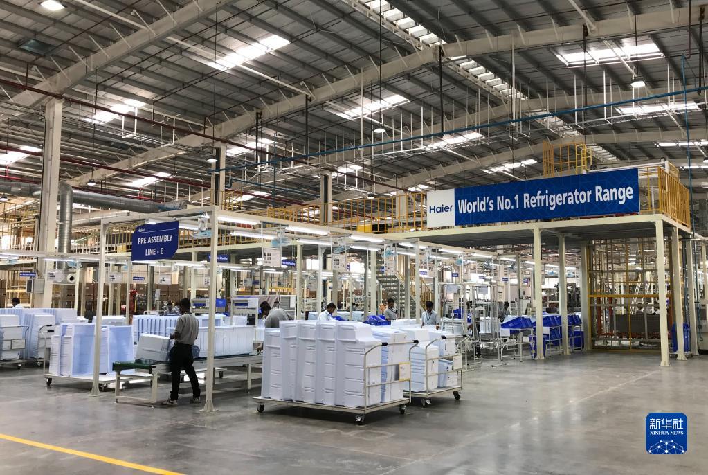 2017年11月16日,工人在印度浦那市的中國海爾集團工業(yè)園廠(chǎng)房?jì)裙ぷ鳌?新華社記者 張興軍 攝