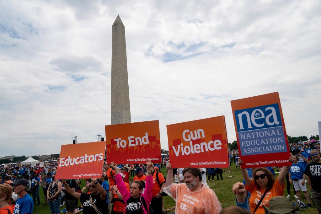 6月11日,人們在美國首都華盛頓舉行集會(huì )示威活動(dòng),要求政府和政客應對槍支暴力問(wèn)題,加強保護兒童生命安全。(新華社記者劉杰攝)