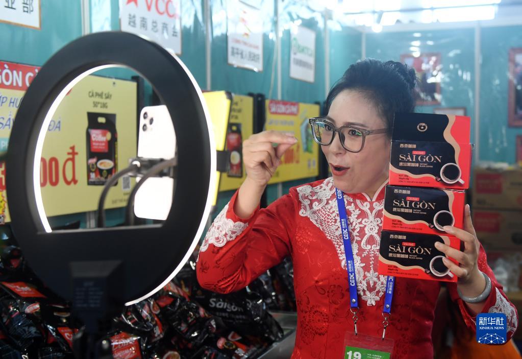 9月19日,在東博會(huì )展覽現場(chǎng),一名參展工作人員在通過(guò)網(wǎng)絡(luò )推銷(xiāo)越南咖啡。