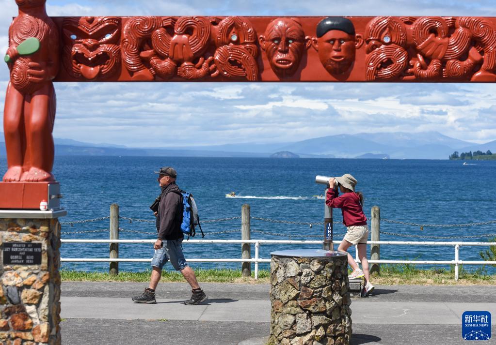這是2020年12月27日,人們在新西蘭北島中部的陶波湖畔游覽。