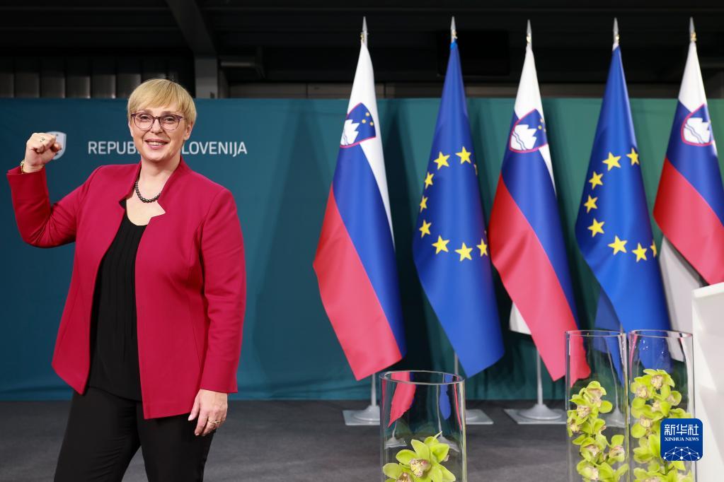 11月13日,在斯洛文尼亞盧布爾雅那,娜塔莎·皮爾茨·穆薩爾在選舉結果公布后慶祝當選。新華社發(fā)(澤利科·斯特凡尼奇 攝)