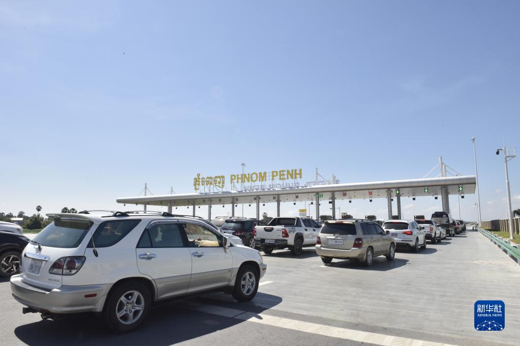 車(chē)輛在柬埔寨首都金邊的金港高速公路入口處排隊(2022年11月7日攝)。新華社記者 吳長(cháng)偉 攝