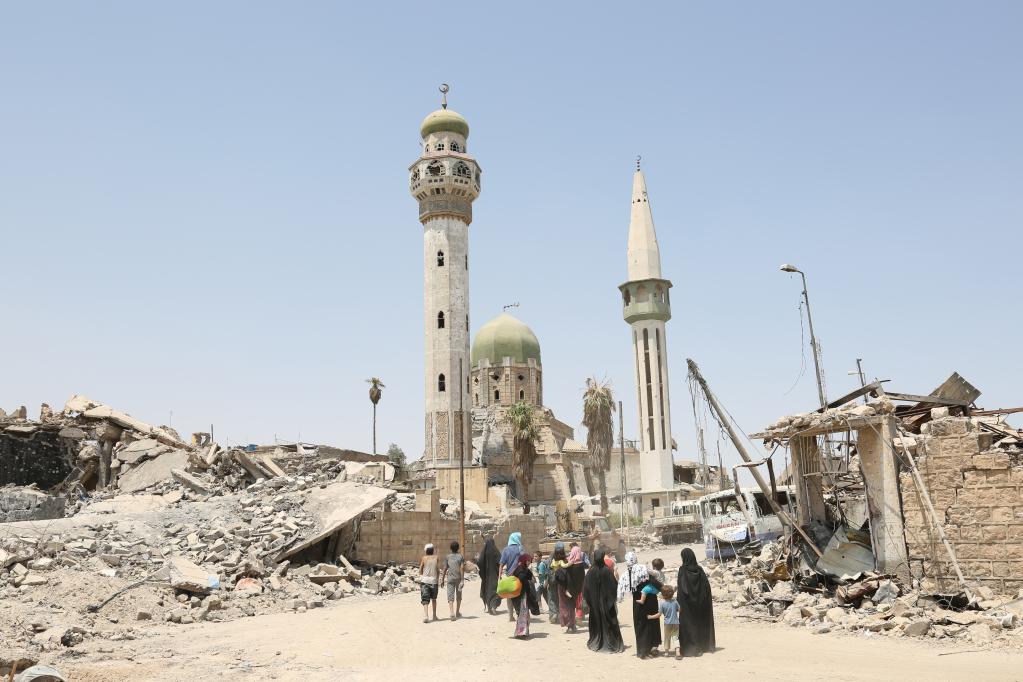 2017年7月10日,伊拉克時(shí)任總理阿巴迪宣布極端組織“伊斯蘭國”在北部重鎮摩蘇爾的統治已被徹底推翻,這個(gè)城市于當天全面解放。經(jīng)過(guò)“伊斯蘭國”三年統治和大半年的攻城之戰,摩蘇爾解放時(shí)已破敗不堪。圖為宣布解放當天,當地平民從摩蘇爾老城的建筑廢墟旁走過(guò)。新華社發(fā)(哈利勒·達伍德攝)