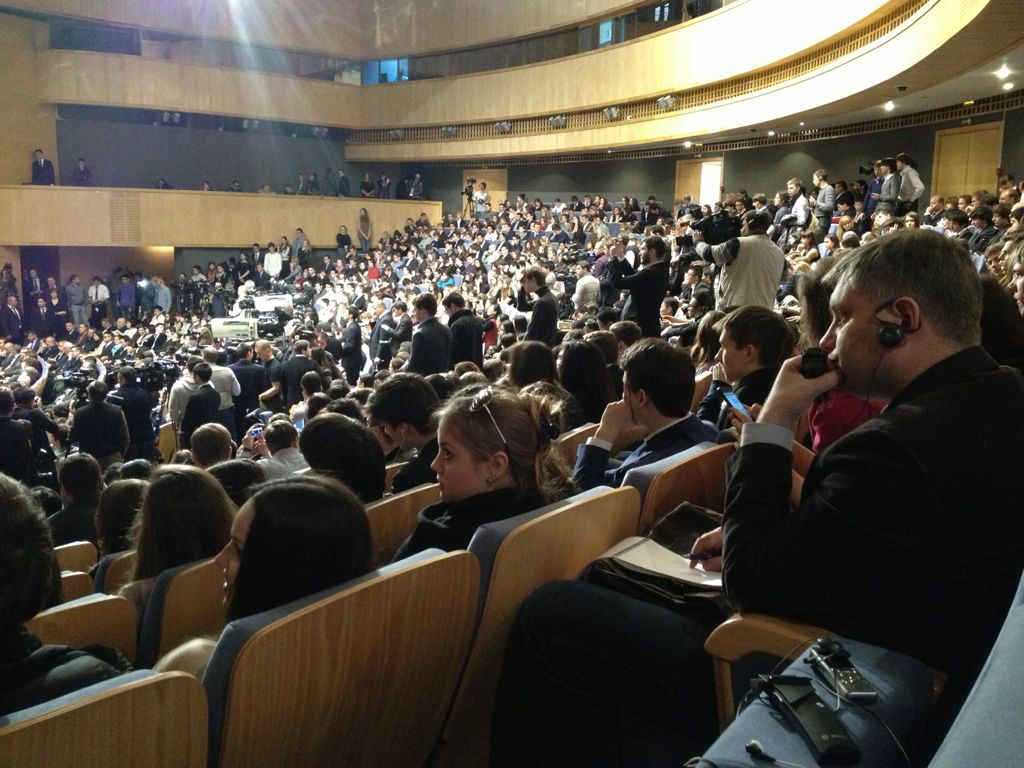 2013年3月23日,國家主席習近平在莫斯科國際關(guān)系學(xué)院發(fā)表演講時(shí),現場(chǎng)座無(wú)虛席。新華社發(fā)