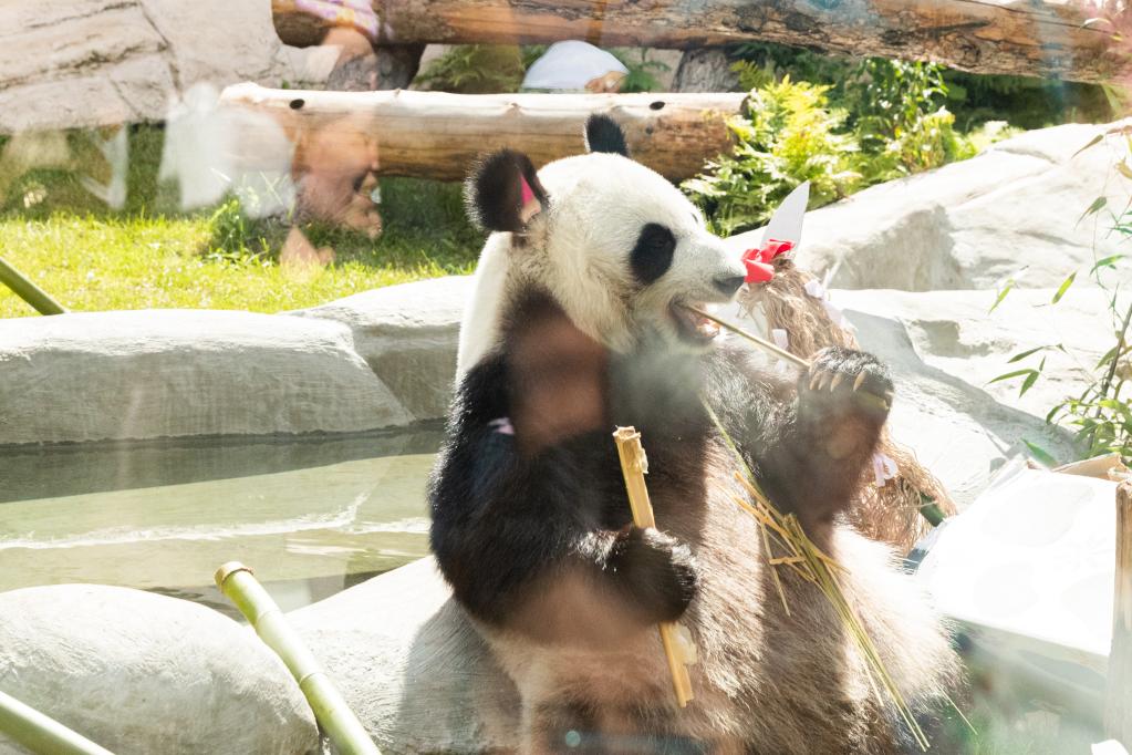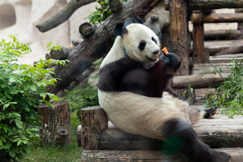 根據俄羅斯動(dòng)物園提供的數據,在俄四年間,“如意”的體重從96公斤長(cháng)到約136公斤,“丁丁”從56公斤長(cháng)到約116公斤,健康狀況良好。請跟隨記者的鏡頭,沉浸式觀(guān)看“如意”和“丁丁”的“吃播”吧。